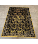 Gold varaklı Siyah Renk Lazerli Peluş Halı PLH00072